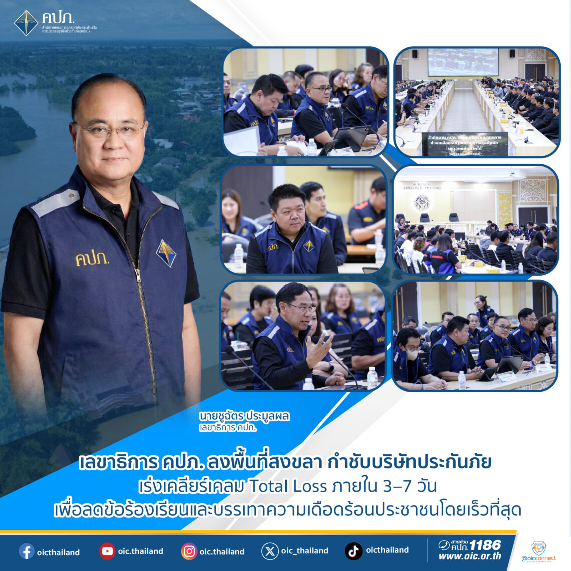 เลขาธิการ คปภ. ลงพื้นที่สงขลา เร่งบริษัทประกันภัยเคลียร์เคลม Total Loss ภายใน 3–7 วัน บรรเทาความเดือดร้อนประชาชน