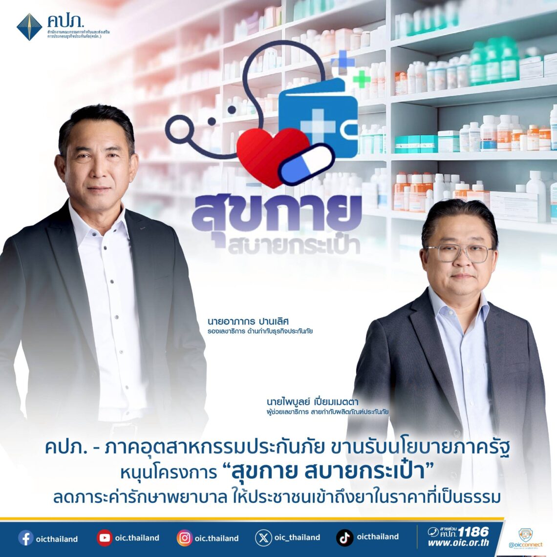 คปภ. จับมือภาคอุตสาหกรรมประกันภัย สนับสนุนโครงการ “สุขกาย สบายกระเป๋า” ลดภาระค่ารักษา เพิ่มการเข้าถึงยาราคาที่เป็นธรรม